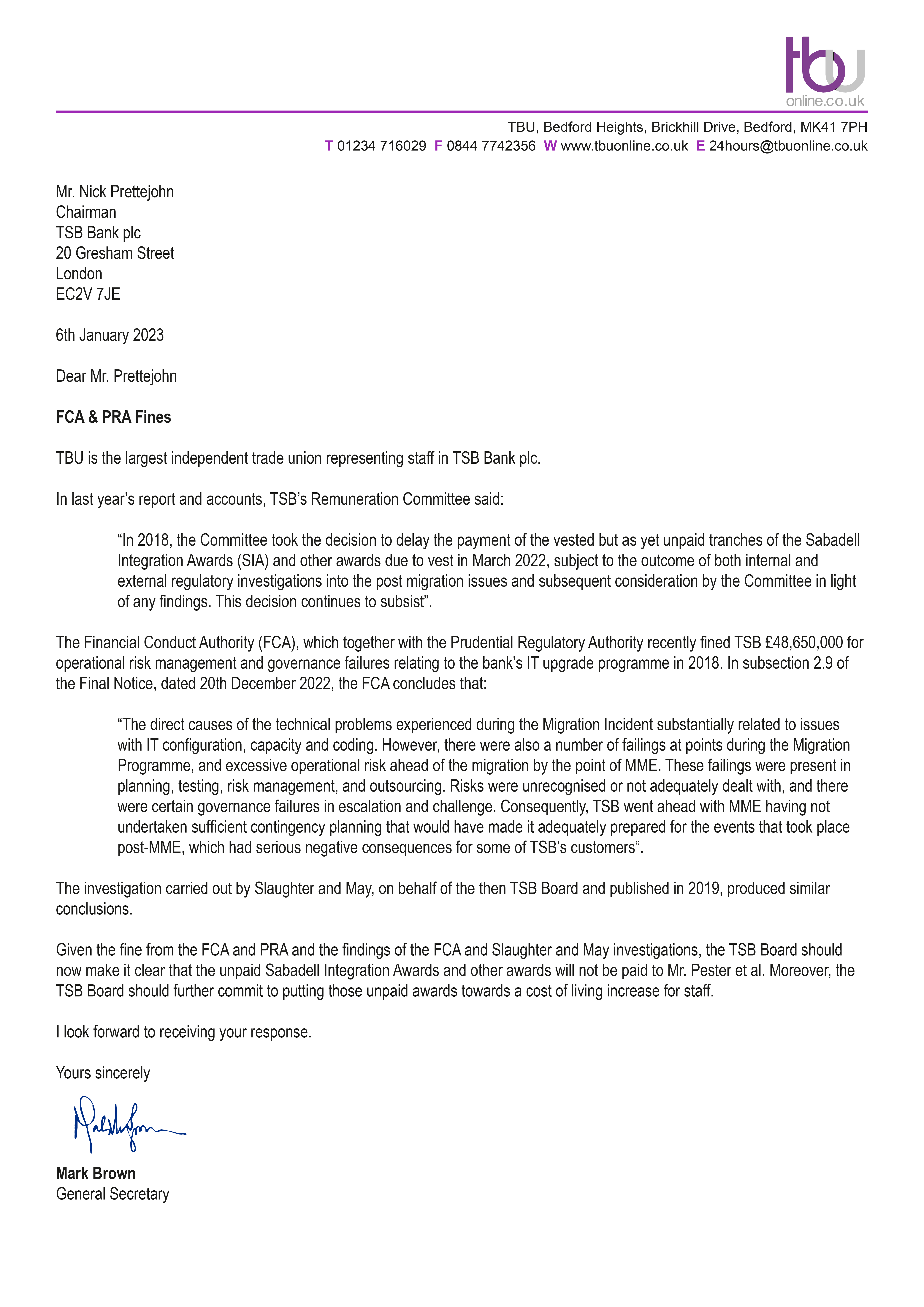 Letter to Nick Prettejohn Regarding FCA & PRA Fines