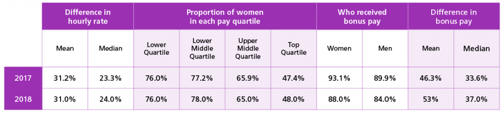 TSB recently reported its April 2018 gender pay gap results in line with the Equality Act 2010 (Gender Pay Gap Information Regulations 2017). The Groups mean gender pay gap increased from 31% (2017) to 31.2% (2018). So, what that means is the hourly rate for women in TSB is 31.2% lower than it is for men or, put another way, women earn 69p for every £1 that men earn. TSB’s median gender pay gap reduced slightly from 24% (2017) to 23.3% (2018).